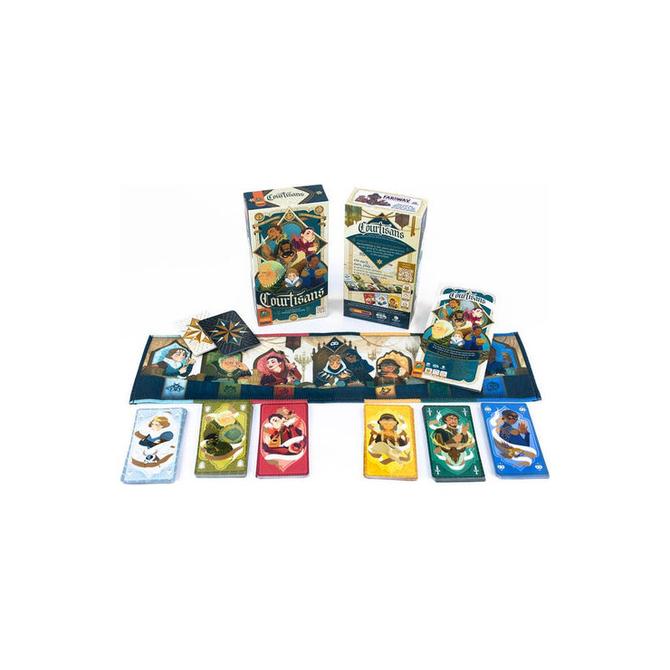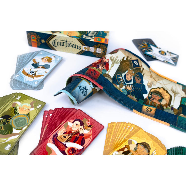 Additionally, some Courtiers have special powers when played and each player begins the game with a secret scoring objective. The player with the most points wins!
