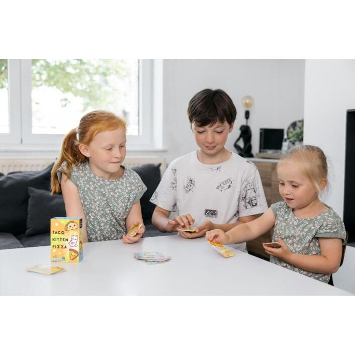 Just like the adult's version Taco Cat Goat Cheese Pizza, be the first to get rid of all your cards to win the game.
