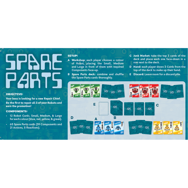 Spare Parts is a fast-paced and highly interactive drafting game of Robotic Repair that is simple to learn but hard to master.