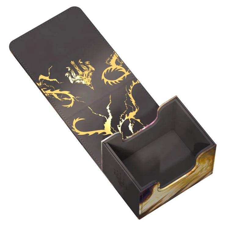 The Sidewinder 100+ made from durable Xenoskin material holds up to 100 double-sleeved or 120 single-sleeved cards, which are kept secure in the deck box thanks to a strong magnetic closure and soft microfiber interior. The sturdy, high-quality Xenoskin surface of the Sidewinder is printed in full color with officially licensed artwork from Magic: The Gathering’s Tarkir: Dragonstorm set.