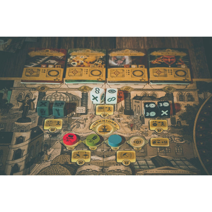 Trickerion is a medium-heavy, Euro-style strategy game. Its core mechanism is worker placement with simultaneous action selection and an action point allocation system.