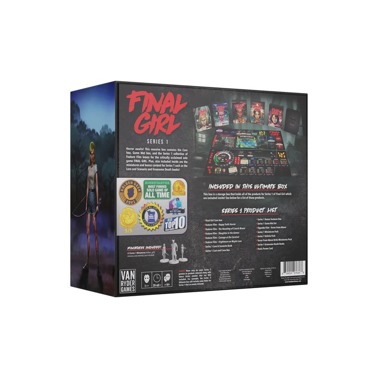 Some of the contents will vary between different Series (for example, the Series 1 Ultimate Box will come with a Final Girl Core Box, while the Series 2 Ultimate Box will come with the Box of Props), but each Ultimate Box will generally contain the same amazing treasure trove of horror gaming goodness, and at a greatly reduced cost than if you purchased everything individually at retail!