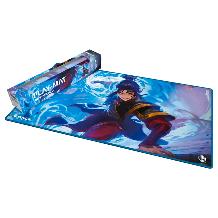 The 61x35cm Play-Mat protects cards and sleeves while playing and improves the gaming experience thanks to its anti-slip underside, while the stitched edges guarantee an even longer service life. The top side of the Play-Mat is printed with officially licensed artworks from Magic: The Gathering’s upcoming set, Avatar: The Last Airbender.