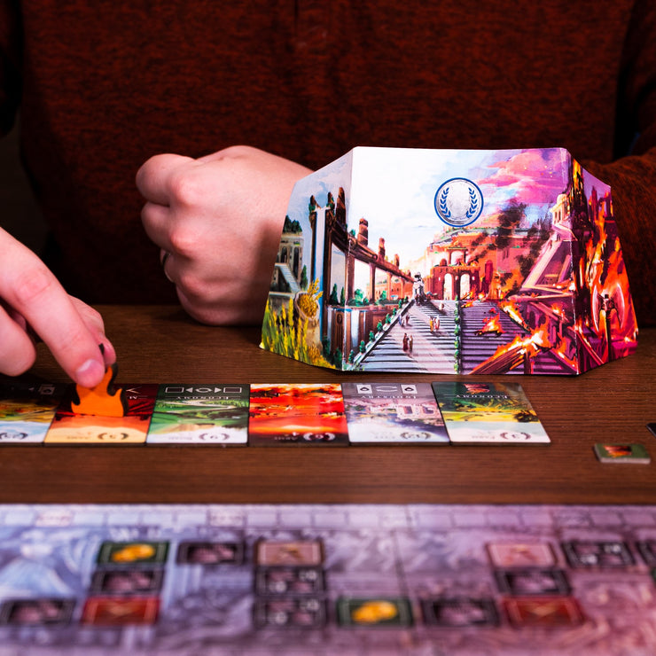 You lead a grand civilization at the height of its influence, but can you save it from collapse? In Empire's End, 2-4 players compete to keep calamity at bay. Empire's End marries the intuitive and elegant mechanism of reverse-bidding with engine-building, long-term planning, and strategic depth. The result is a game with a quick tempo, abundant tension, and multiple challenging paths to victory.