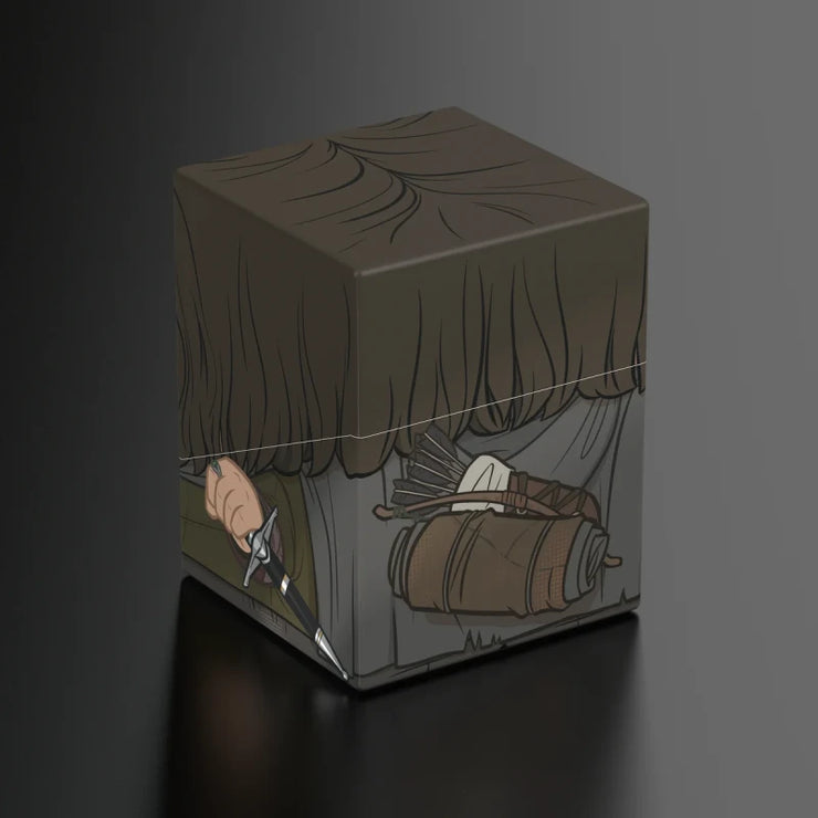 Collectible box for storing TCG decks, tabletop gaming accessories, and/or collectibles. The Aragorn Squaroe from the The Lord of the Rings edition holds up to 100 cards in double protective sleeves if used as a deck box. Squaroes are made from 78% renewable resources and fit perfectly into the separately available Collectors Case.