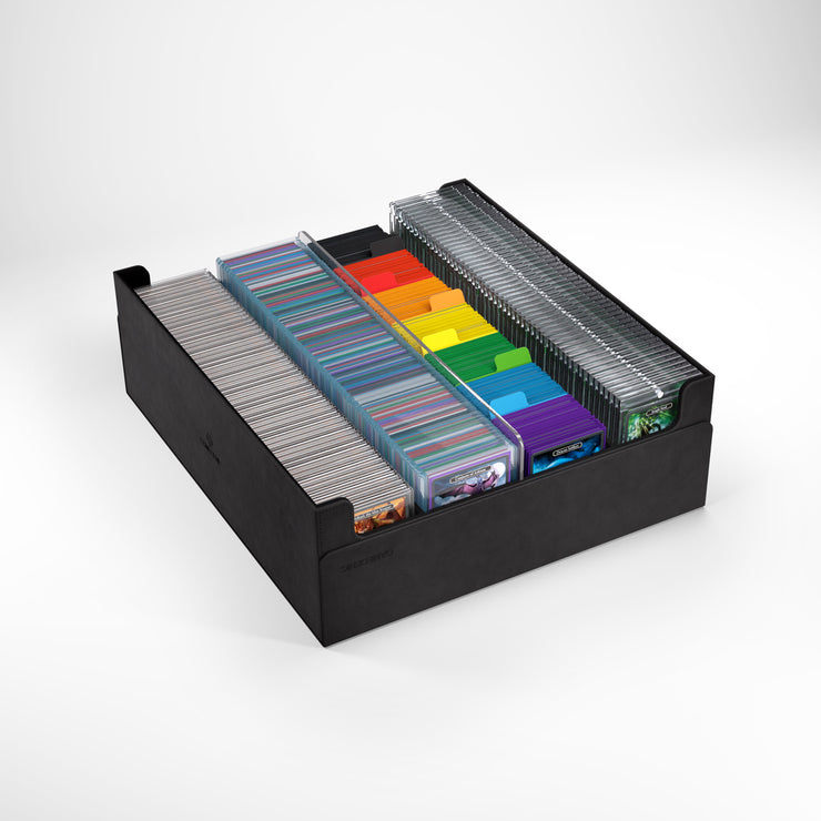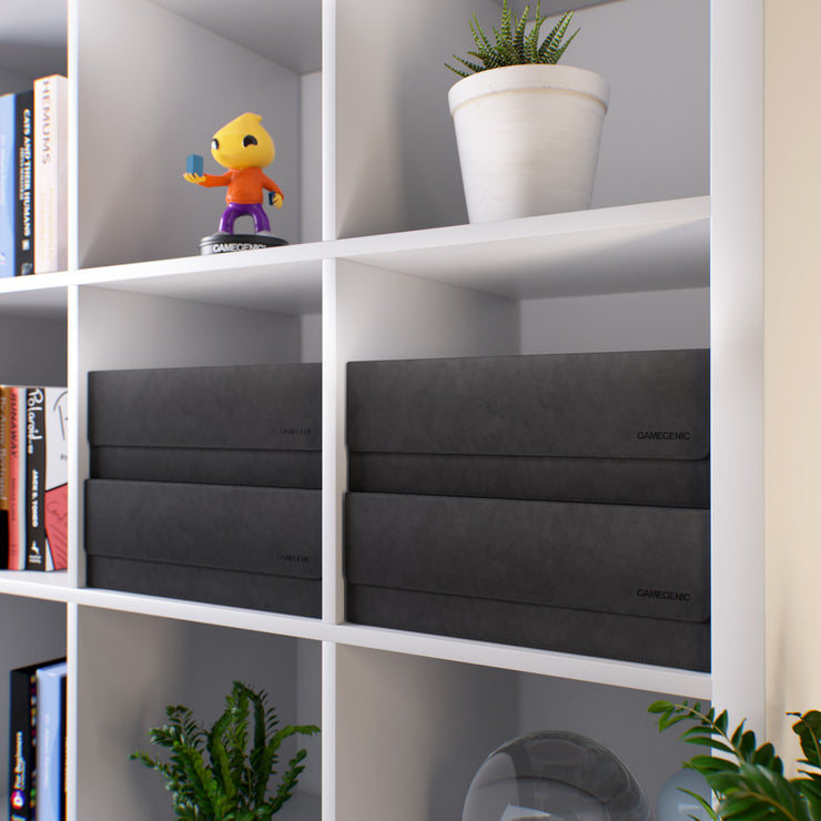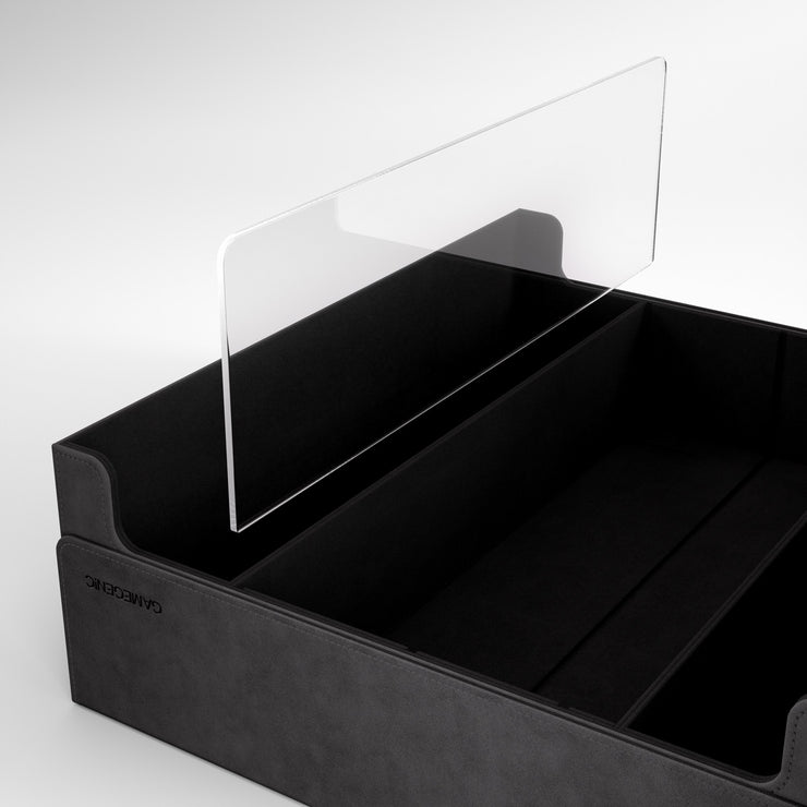This premium multifunctional storage solution for cards and deck boxes gives you almost endless options to gather, hold, and sort your valuable card collection. It includes signature Gamegenic features like the shiftable and removable acrylic space divider and the well-established convertible system.