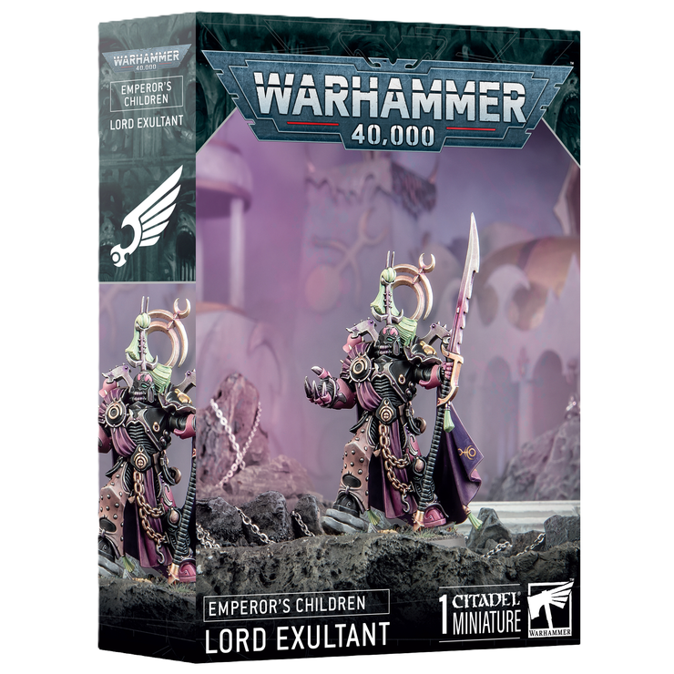 This multipart plastic kit builds one Lord Exultant, a decadent leader for your Emperor's Children armies in games of Warhammer 40,000. This flexible kit can be built with your choice of power fist, plasma pistol, or rapture lash in one hand, and power spear, power sword, or screamer pistol in the other. You can also assemble the miniature with a choice of bare or helmeted heads to further customise your model. However you build them, this hedonistic character is ideal for cutting down enemy warriors in the name of Slaanesh.