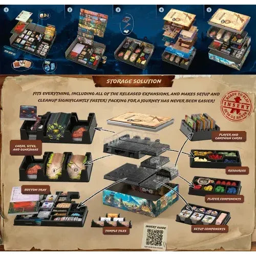 Meet the Adventure Chest—a brand-new expansion to Lost Ruins of Arnak that features an original storage solution designed by CGE and fits all previously released Lost Ruins of Arnak content. The Adventure Chest box is bigger and sturdier than that of the base game—and it still fits into a certain board-gamer-favorite Swedish-made shelf! The insert itself is made of 8 individual boxes from layered PET material and is designed to make setup, play, and cleanup as easy as possible.