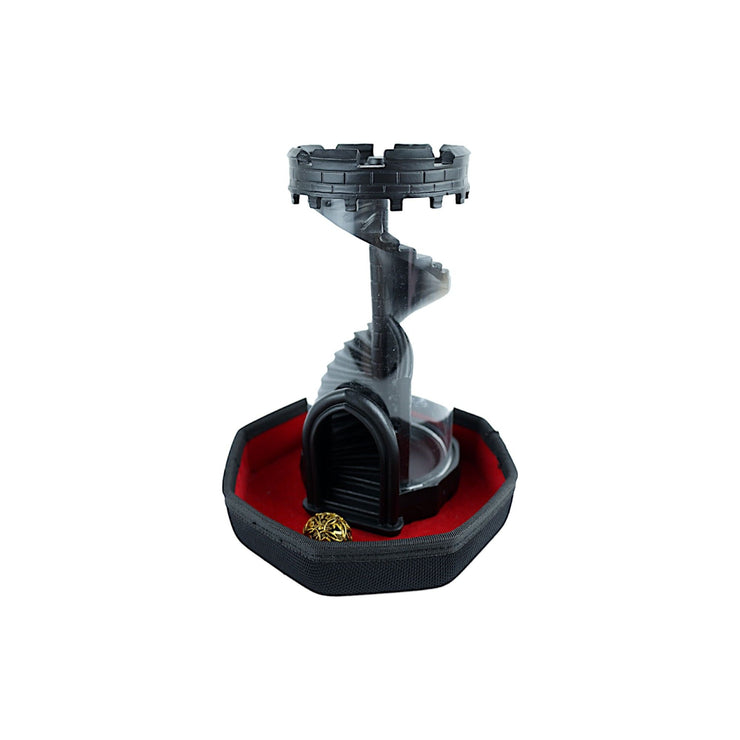 This resin crafted dice tower with clear sides is designed to enhance your gaming sessions by providing a unique way to roll your dice while keeping them contained and visible at all times. Combine with your favourite dice mat and customize your experience.