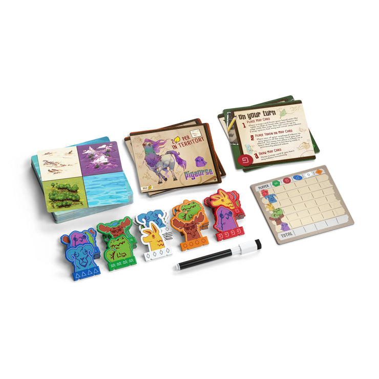 As an intrepid investigator of all things idiosyncratic, your job is to explore the island and document these fantastic creatures. On your turn, explore by placing a terrain card somewhere on the island (with the ability to cover up previous terrain!).