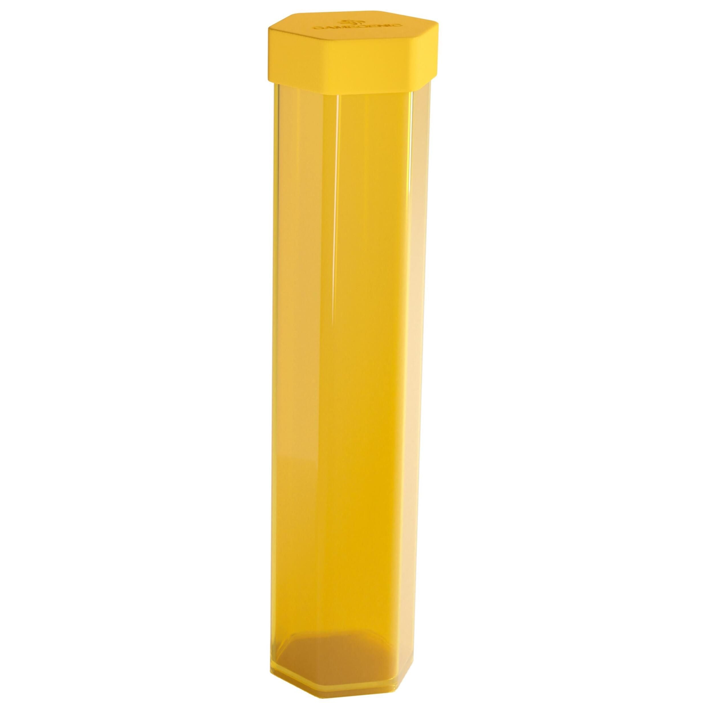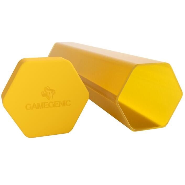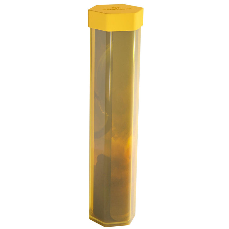 Keep your playmats organized and protected. The Playmat Tube provides a secure storage solution for stitched and unstitched playmats in vibrant, semi-transparent colors. A hexagonal shape keeps the tube from rolling around on the table. The cap is made out of a flexible material and can be easily taken off, whilst still creating a tight seal to prevent the playmat from falling out accidentally, even when shaken.