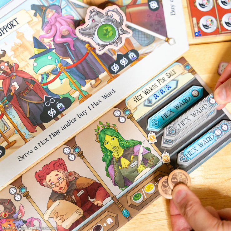 Tea Witches is a worker placement game set in the fantasy world of Britewitch City where players are witches running magical tea huts, in hopes of being the best in show at the annual Teaquinox Faire.