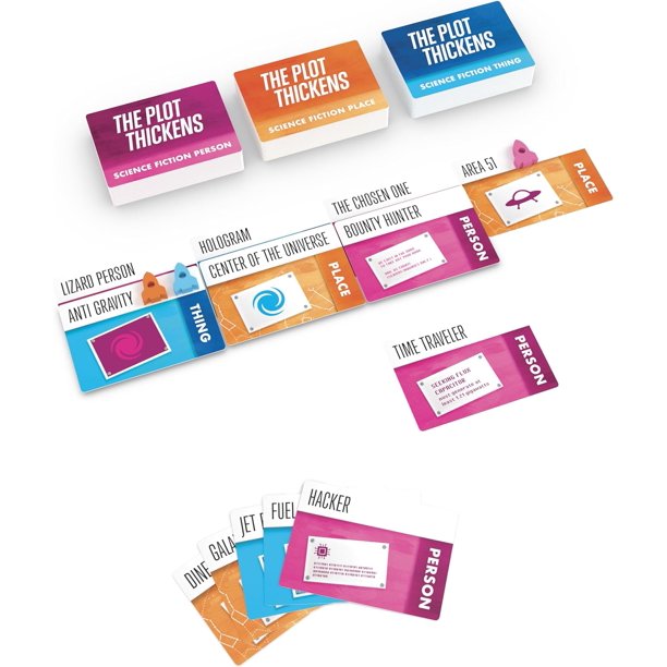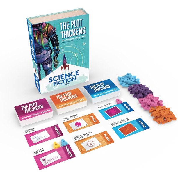 The Plot Thickens is a storytelling game for quick-thinking, imaginative folks just like you and your friends. The object is to take your hand of story cards, (people, places and things) and lay out the tale of your character, and their fate! You’ll earn plot points for every card you use to build your story, and every time you interweave with other’s narratives.