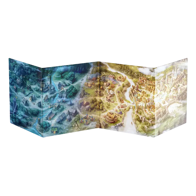 This DM screen keeps all the essential details at your fingertips. Need an NPC name that's not your default "Bob"? It's right there. Want to add chaos and glory to your battles? Check the fumble & final blow charts! Need loot fast? You guessed it! Just look at your DM screen.