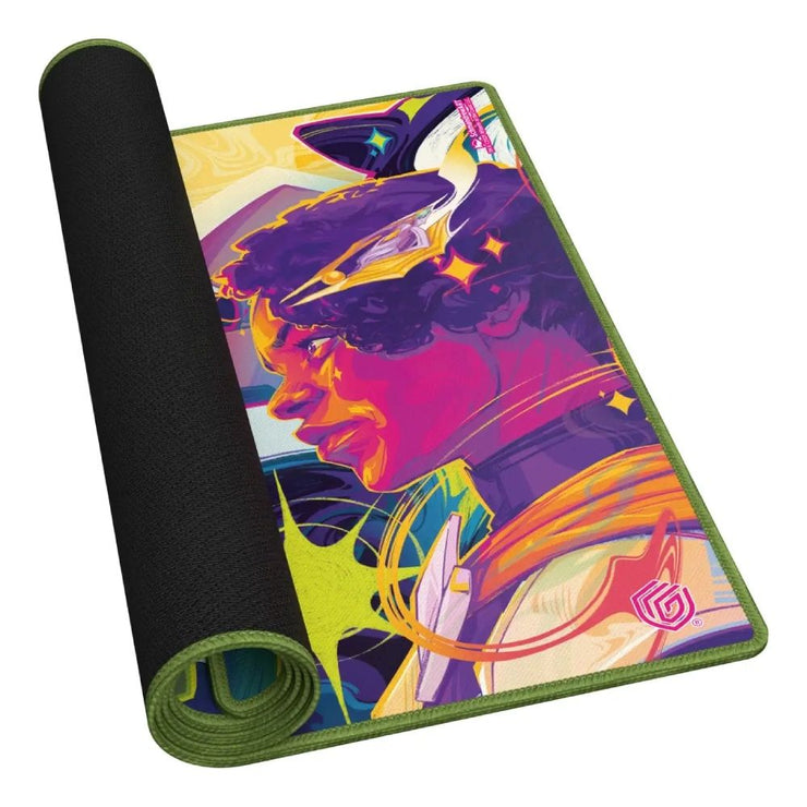 The 61x35cm Play-Mat protects cards and sleeves while playing and improves the gaming experience thanks to its anti-slip underside, while the stitched edges guarantee an even longer service life. The top side of the Play-Mat is printed with officially licensed artworks from Magic: The Gathering’s upcoming set "Edge of Eternities".